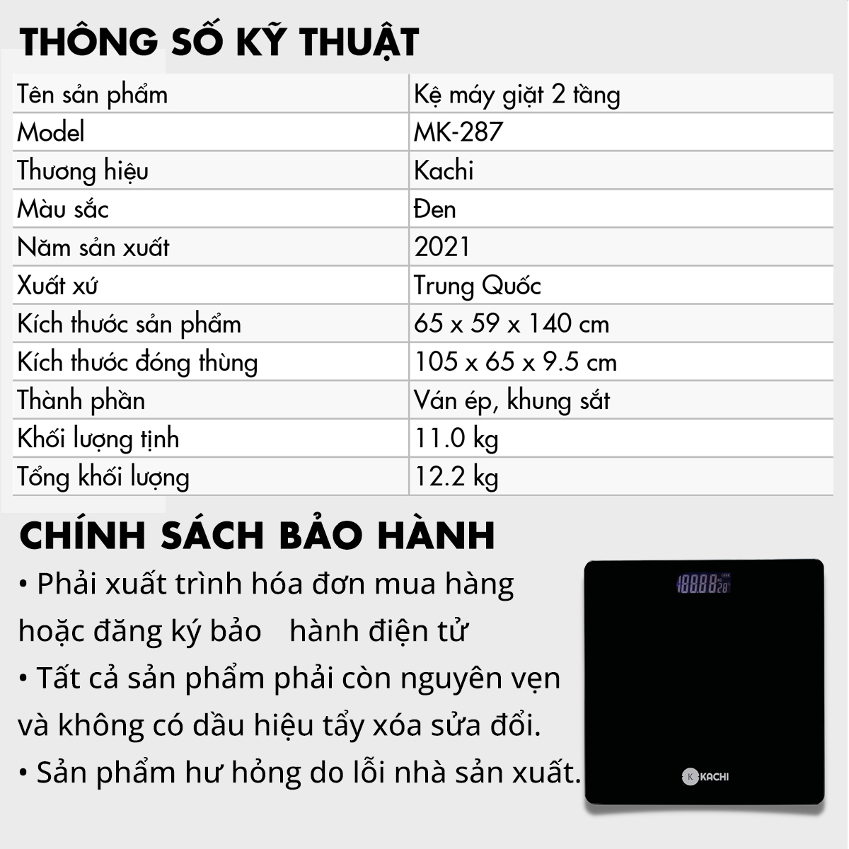 Thông số kỹ thuật - CÂN SỨC KHỎE KACHI MK315