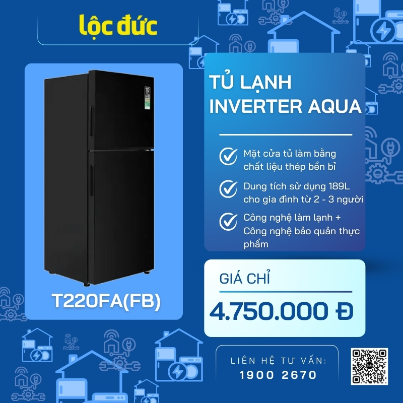 4️⃣ TỦ LẠNH INVERTER NGĂN ĐÁ TRÊN AQUA 189 LÍT AQR-T220FA(FB)