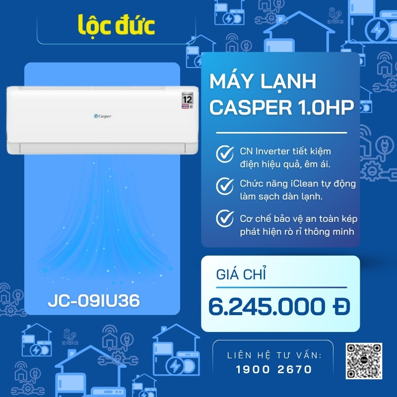 3️⃣ MÁY LẠNH TREO TƯỜNG INVERTER CASPER 1.0HP JC-09IU36