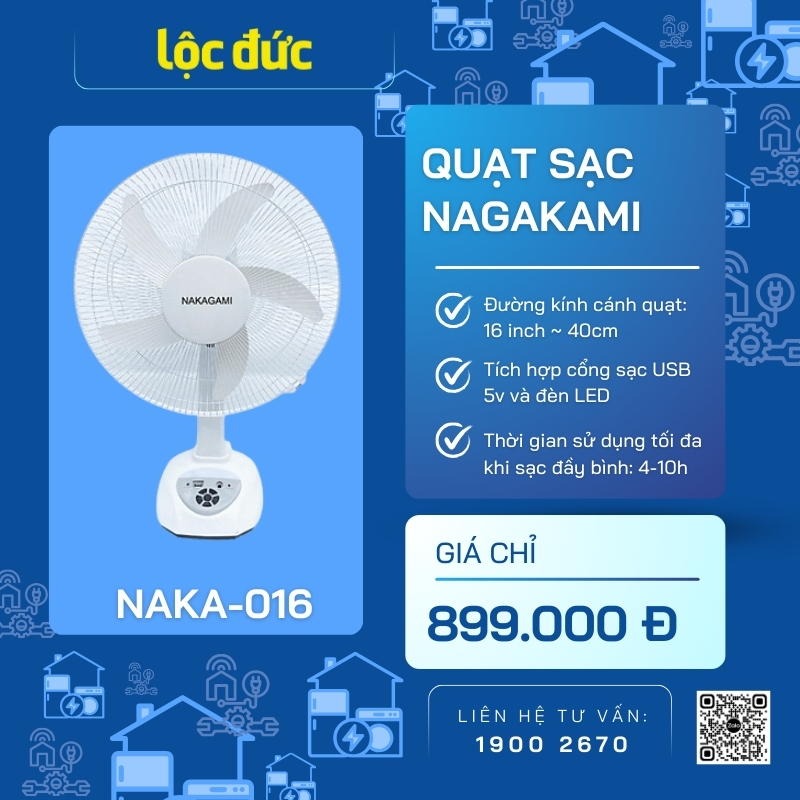 2️⃣ QUẠT BÀN SẠC NAGAKAMI NAKA-016