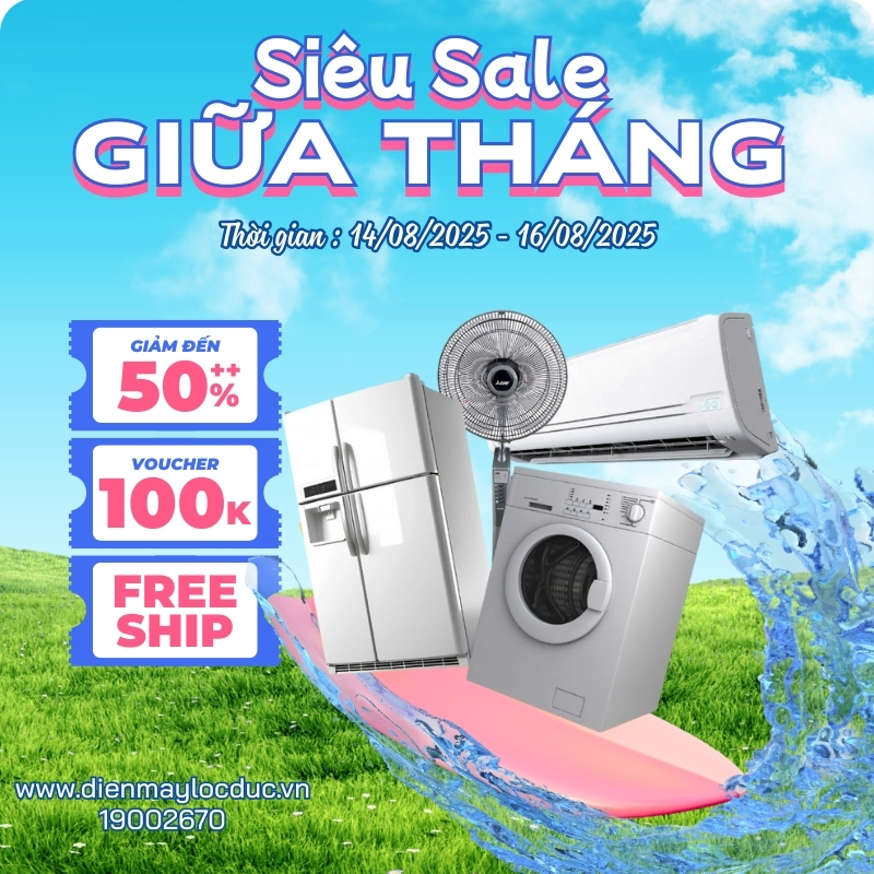 ⏰ Thời gian: 14/8/2025 – 16/8/2025. Giữa tháng mà không săn deal là tiếc cả tháng! Siêu Thị Điện Máy Lộc Đức tung ưu đãi “đỉnh của đỉnh” – giảm sâu, tặng quà chất, giá rẻ bất ngờ! 🔥