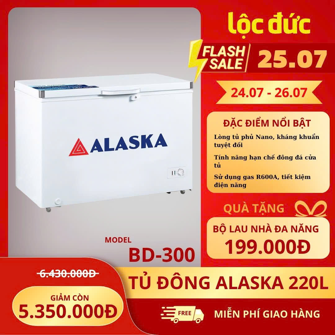 1️⃣ TỦ ĐÔNG ALASKA 300/220 LÍT BD-300 NHÔM (R600A)