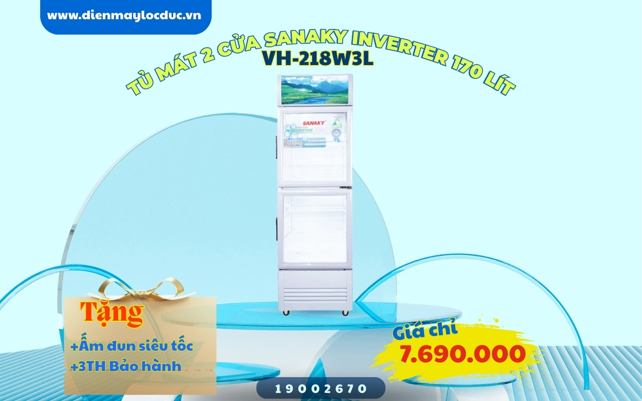 2. TỦ MÁT 2 CỮA SANAKY INVERTER 170 LÍT VH-218W3L NHÔM (LOW-E) (R600A)
