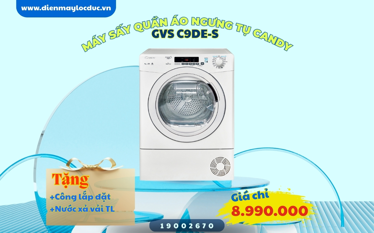 3. MÁY SẤY QUẦN ÁO NGƯNG TỤ CANDY 9.0KG GVS C9DE-S