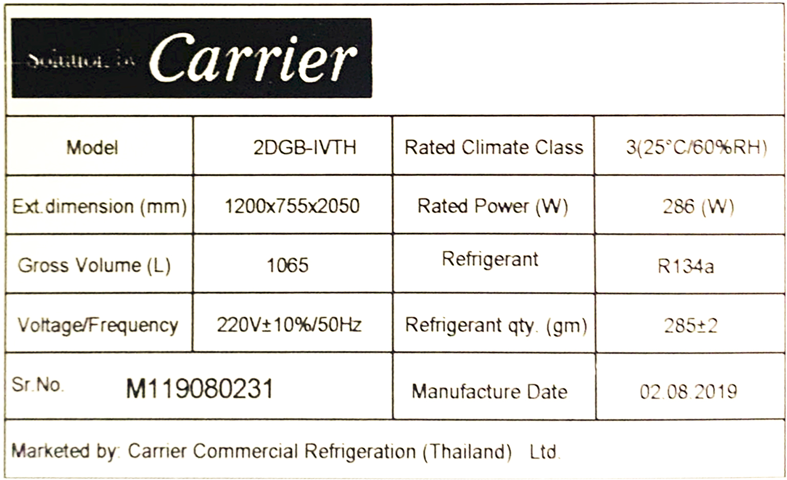 Thông số kỹ thuật - TỦ MÁT CARRIER INVERTER 1065 LÍT 2DGB-IVTH (R134A)