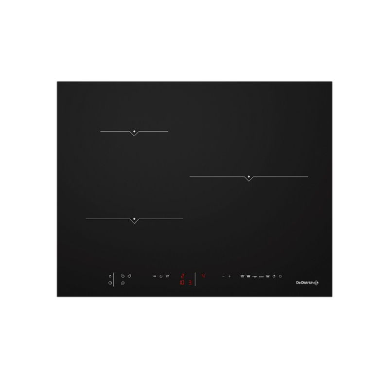 Bếp từ De Dietrich DPI7550B được thiết kế với 3 vùng nấu có kích thước và công suất khác nhau, giúp tối ưu hóa việc sử dụng cho nhiều loại nồi và món ăn.